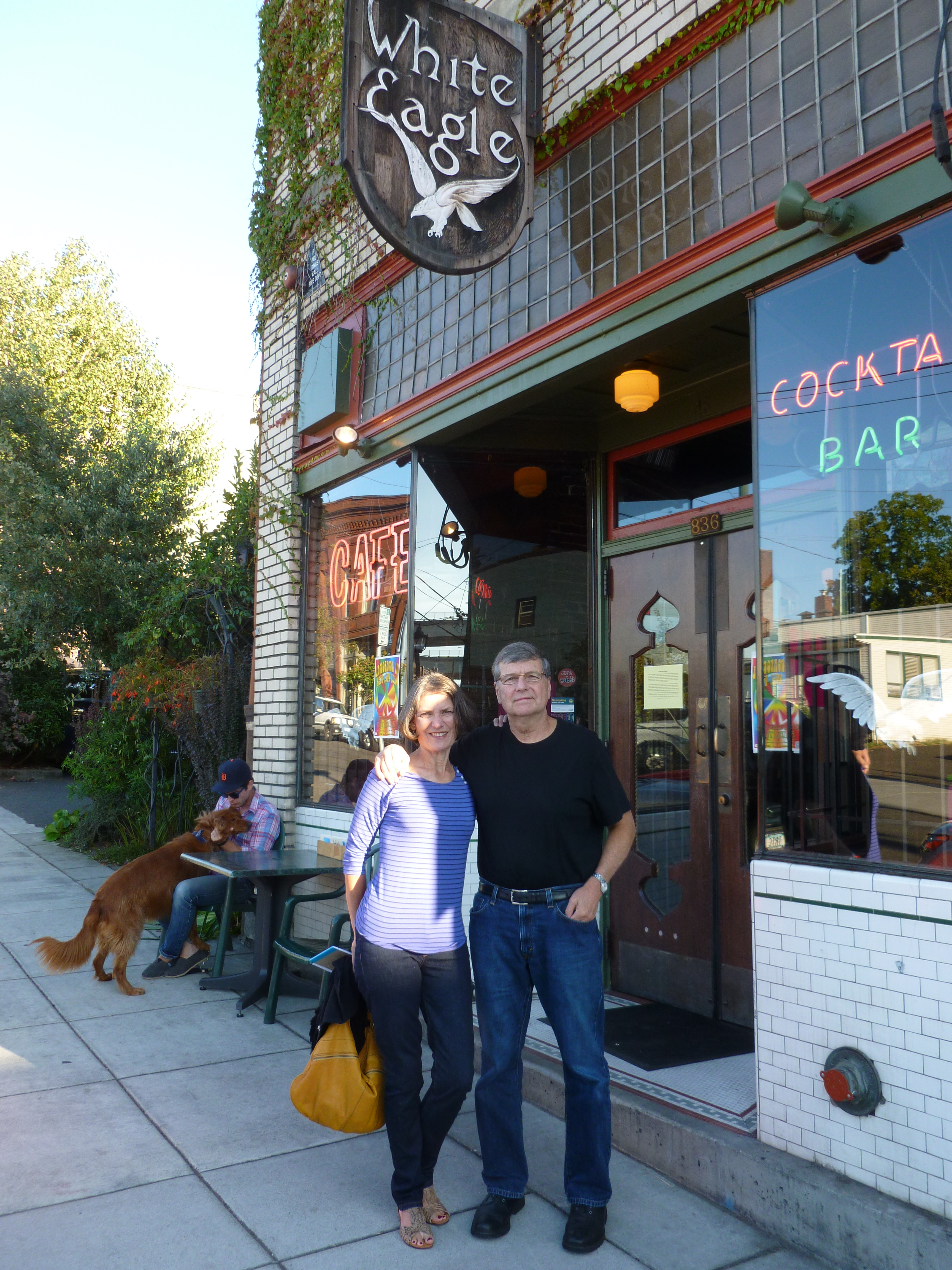 D and J Entrance White Eagle 2 Published November 11, 2012 at 3456 × 4608 in The White Eagle Saloon and the November Beerchaser of the Month – Forrest Green Thebeerchaser and spouse, Janet at the entrance to the Historic White Eagle Saloon