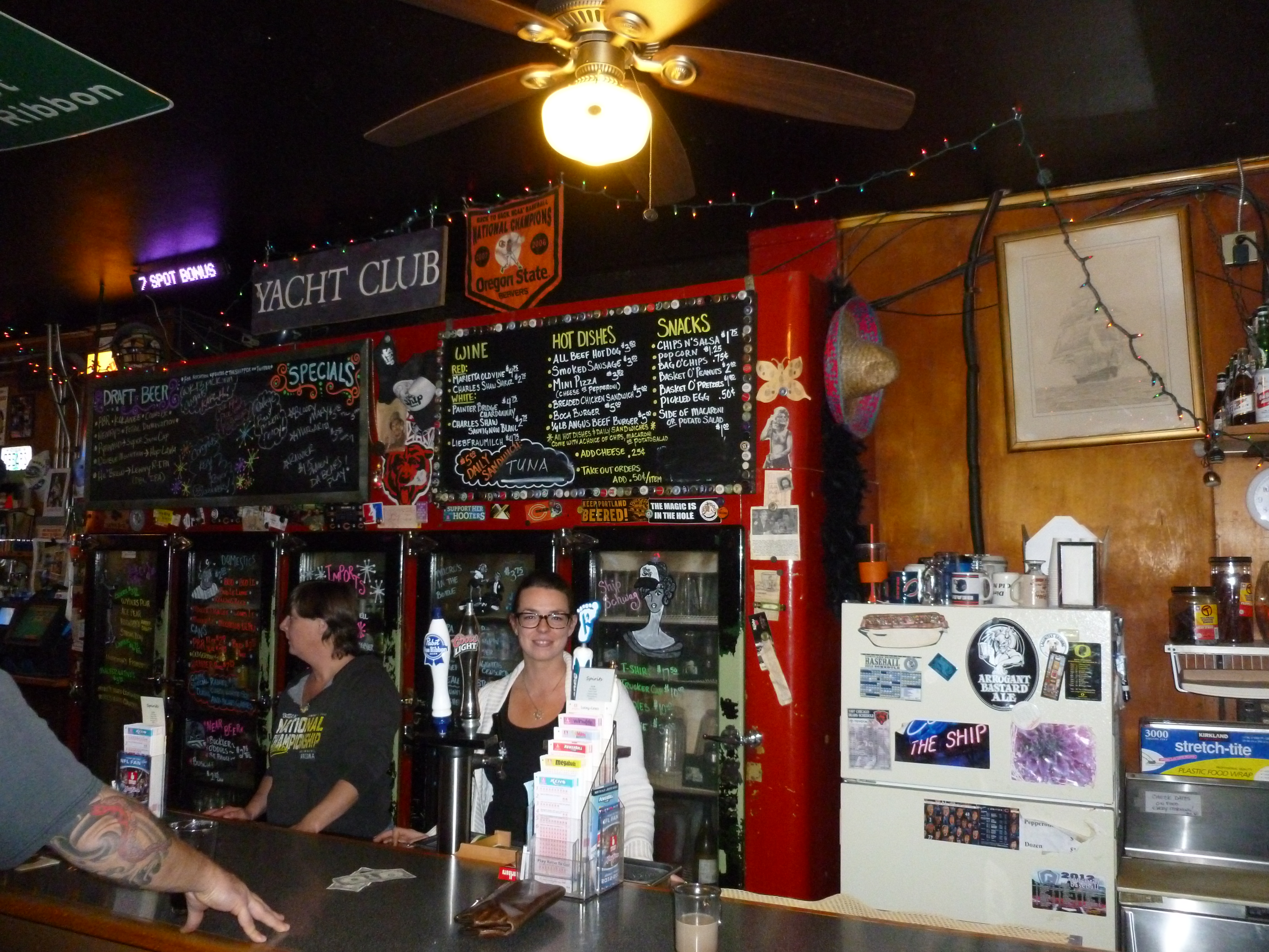 Ship Candace Published December 9, 2012 at 4608 × 3456 in All Hands on Deck at the Ship Tavern From L to R – Debbie and Candace standing below “The Menu”