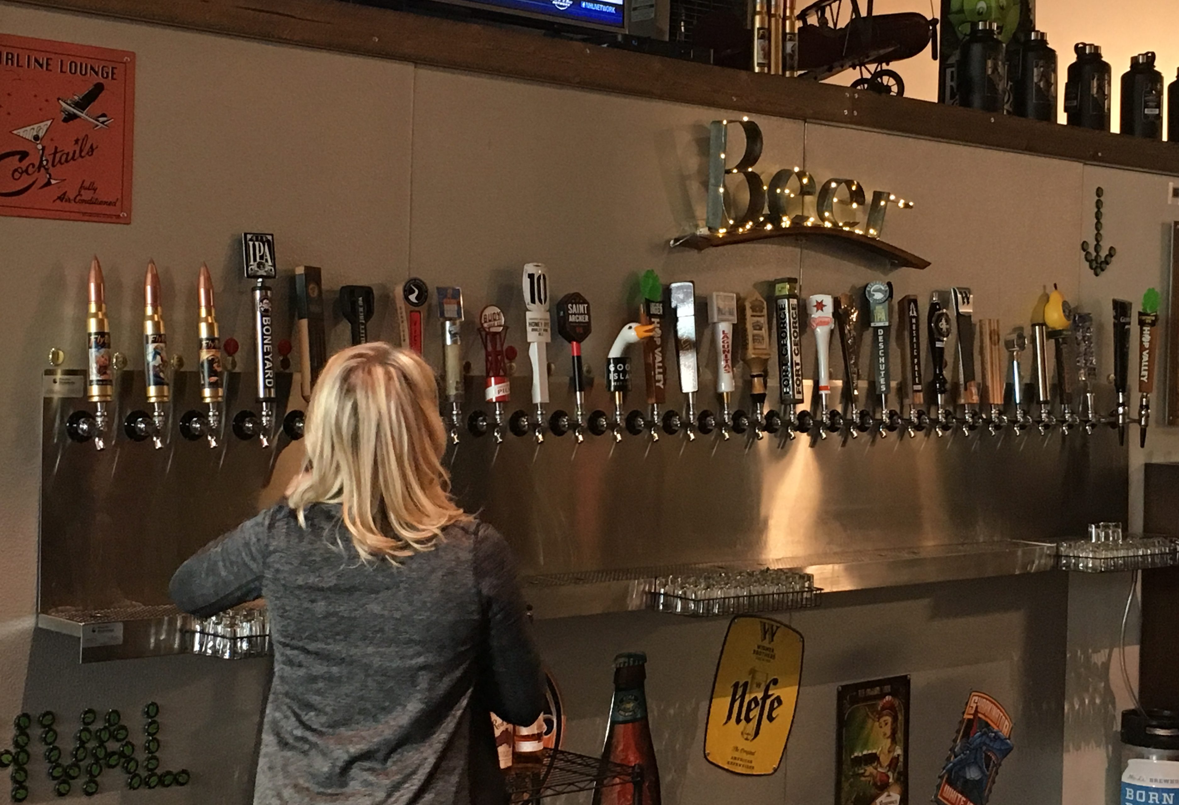 Mark’s research determined that the name “Flyboy” was available and after securing the legal rights, he wrote to the American Aviation Historical Society for permission to use their artwork – it was in the public domain and they sent out templates for him to convert into signs and interior art which are a highlight of the pub in Tigard.