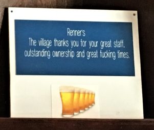 As one approaches Renner’s, the sign, which looks similar to an old Rexall Drug Store sign, beckons you into what is a very tight and intimate space – very different than some of the spacious classic dive bars reviewed previously on Thebeerchaser such as Gil’s Speakeasy or Bar of the Gods.