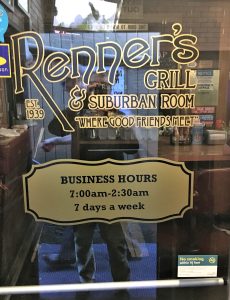 Based on my two recent visits, I have added another memorable dive bar to my list of favorites – Renner’s Grill and Suburban Room, a well-known watering hole that’s been around since 1939.