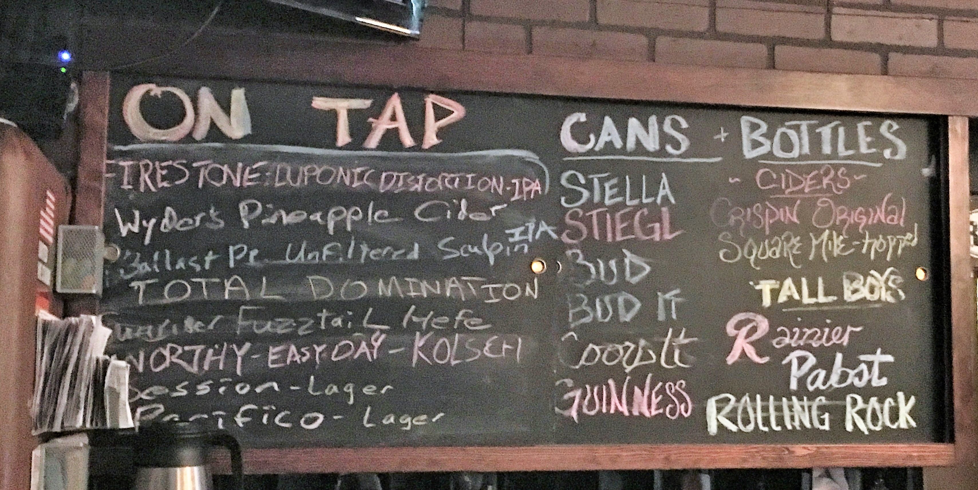 Walt is a veteran of such bars such as the Lutz Tavern and more recently, Ancestry Brewing. Walt had a draft Total Domination IPA from Ninkasi Brewing and I couldn’t resist a PBR Tall Boy.