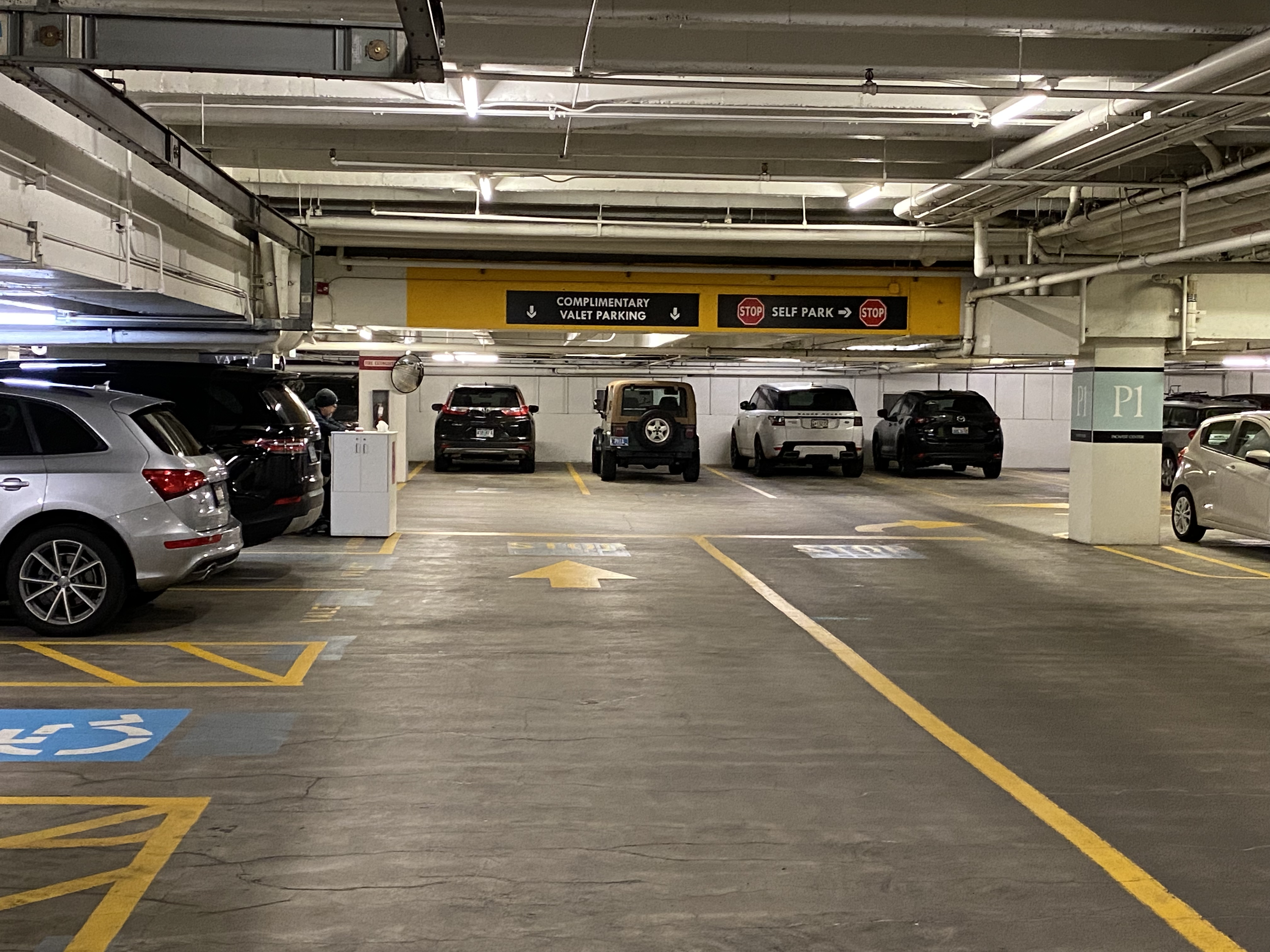 We had arranged town-car limo service from their hotels, and the drivers were instructed to enter the parking garage on Jefferson Street. Rather than stop at the valet, they would proceed to the third level where we had reserved spaces for them.