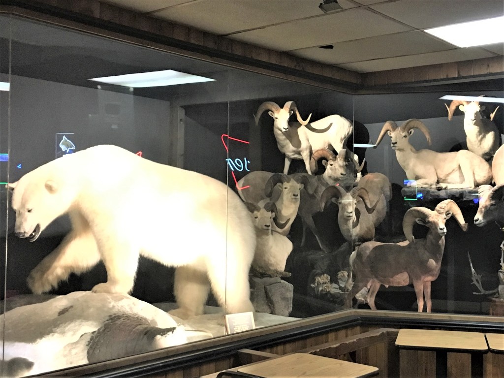 And the long-time tradition of all-female bartenders still remains as evidenced when we returned this summer. One recent Roadtrippers.com review stated, “Amazing dive bar, if you’re lucky hottie Alaskan Annie will be bartending.” Annie was indeed our bartender and proudly showed us her calendar entitled “Ladies of the North.” (#10 – #11)