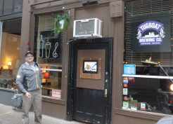 There, Kathryn, our friendly bartender, went through the list of their brews (German beer is their specialty) and talked me into trying a German Rauchbier – a smoked malt beer – Marshall’s Deep Purple Rauchbier (6.0%). Beer Advocate described it as:
