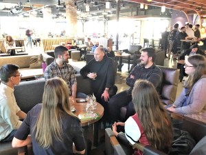 He got feedback from the students on the beer and had a great chance to chat with them.  Notwithstanding his assertion that he is basically a shy person, the students appeared to really enjoy the conversation.   I think many of them will make the trip to the Taproom when it opens.