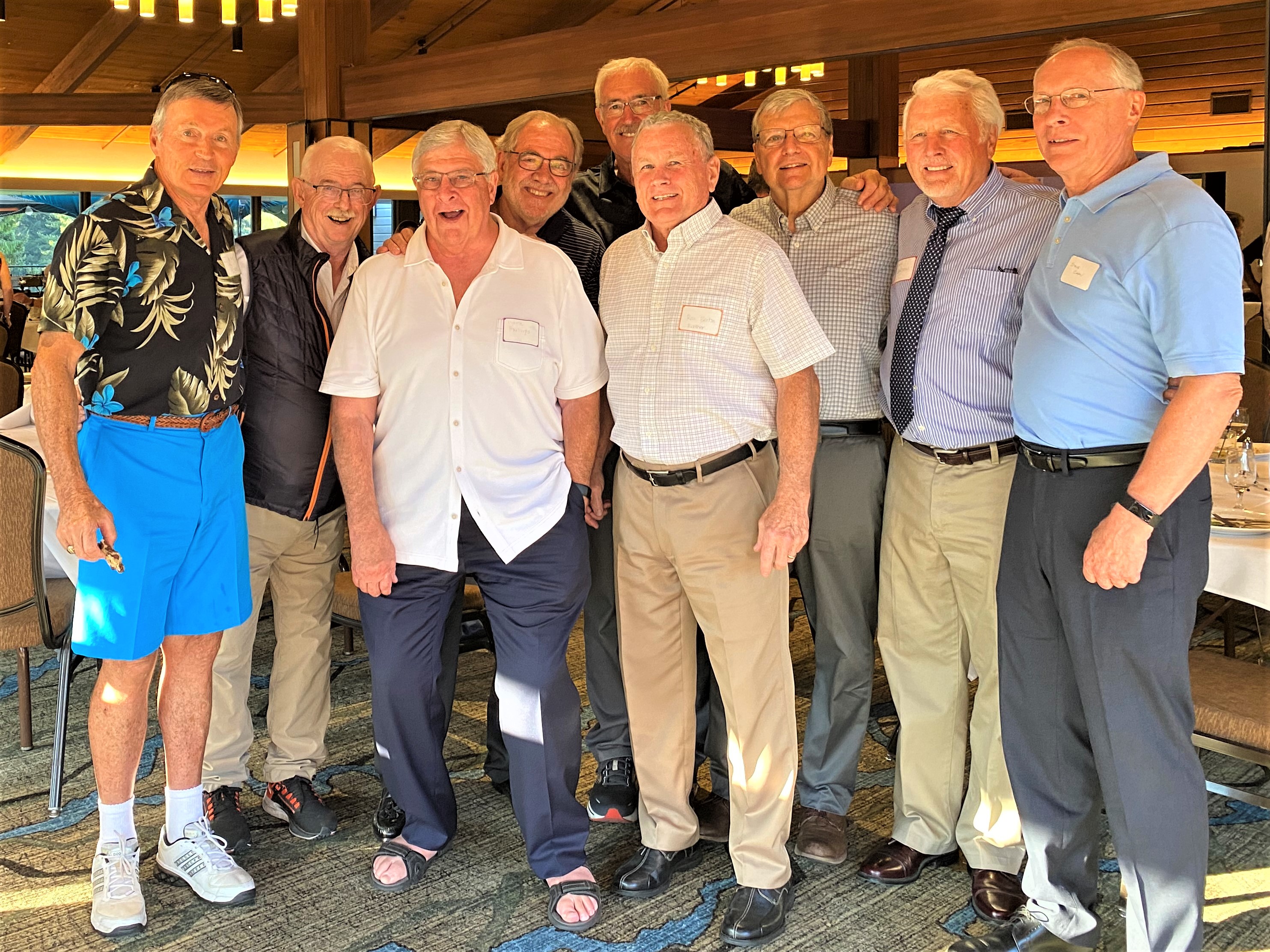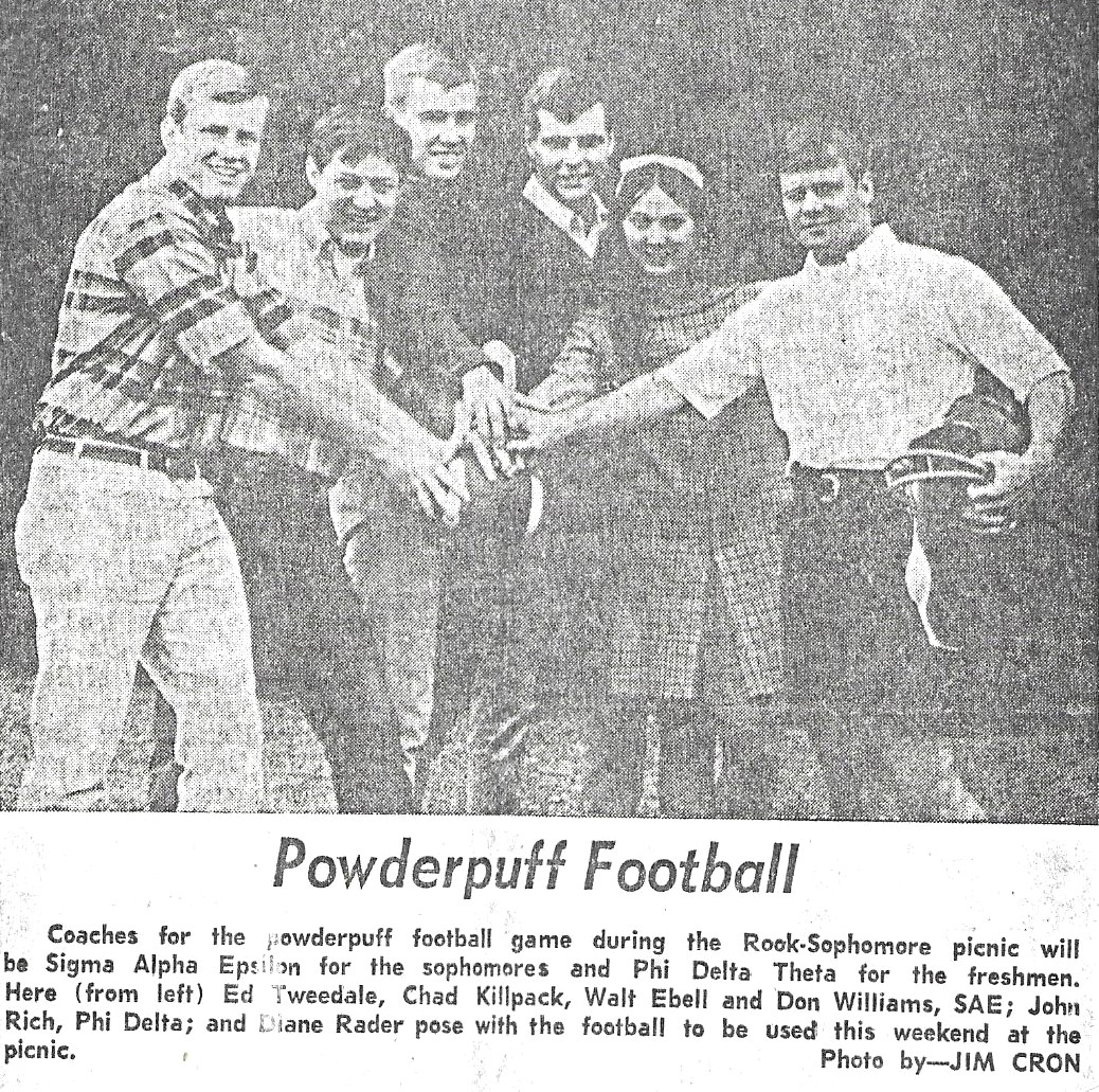 For example, in the SAE fraternity, I lived with the following members of the Giant Killer Team – Larry Rich, Don Whitney, Roger Cantlon, Duane Barton, Jess Lewis, Jim Blackford, Don Welch, Chris Wahle, Clyde Smith and Jim Scheele.  In our freshman year, Rich and Whitney got up each weekday morning at 7:00 A.M. and did “rook chores” at the frat each morning like the rest of their classmates.  And we were not a jock house.