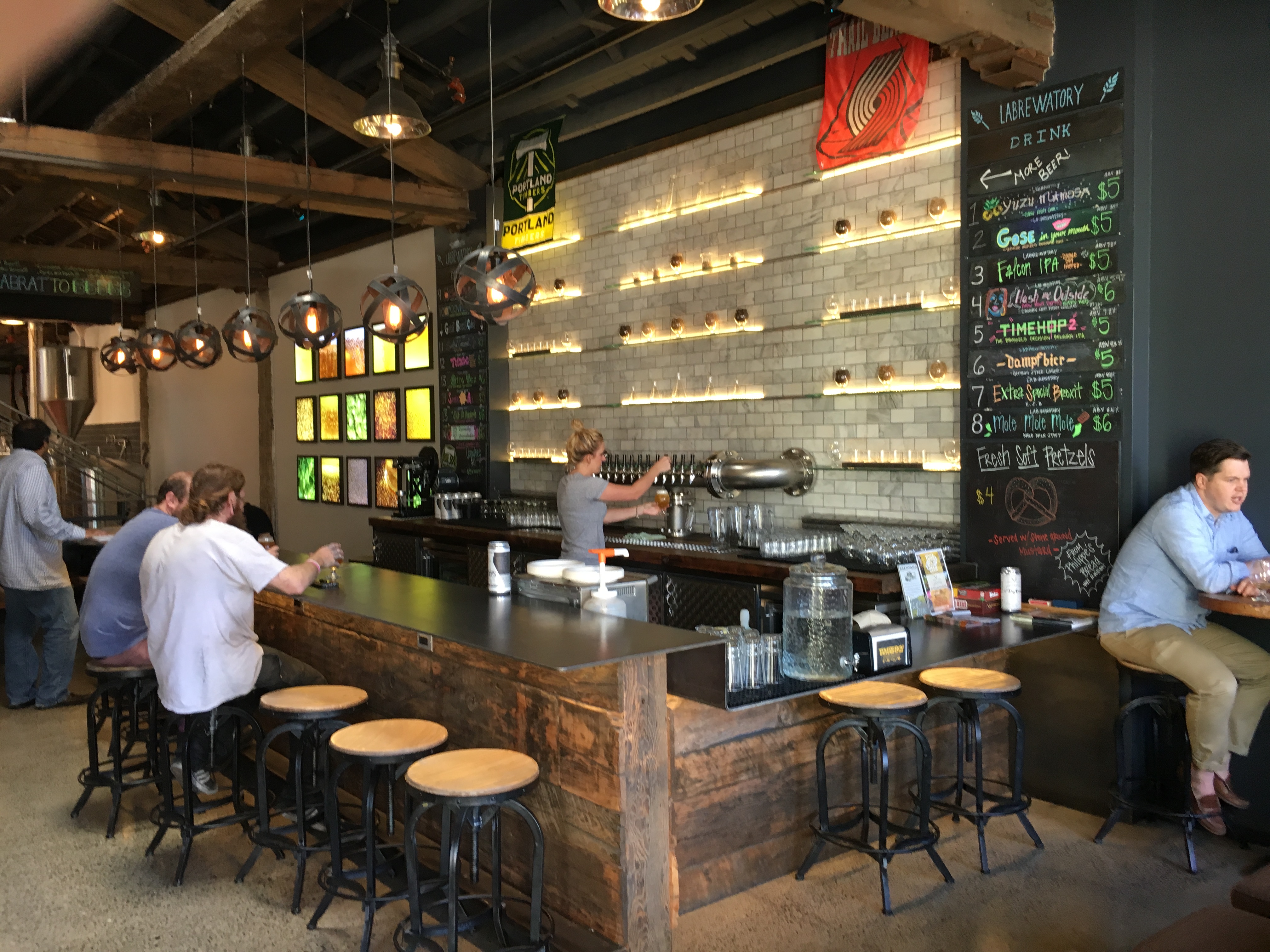 Although the Labrewatory is typical of many small breweries – a large garage door that can be opened in good weather – the venue is more than a cool, fifty-seat taproom.  t’s actually a brewing experiment – an idea generated in late 2015 by its head brewer, Charlie Johnson.  And it gets some good reviews including being selected by Travel Portland as one of “Portland’s Best New Breweries in 2015:”