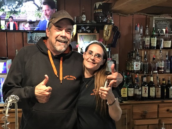 John met Dallas when she bartended for him in 2013 and they married in 2016. They jointly worked to again integrate the Dirty Shame into the community of 250 people.
